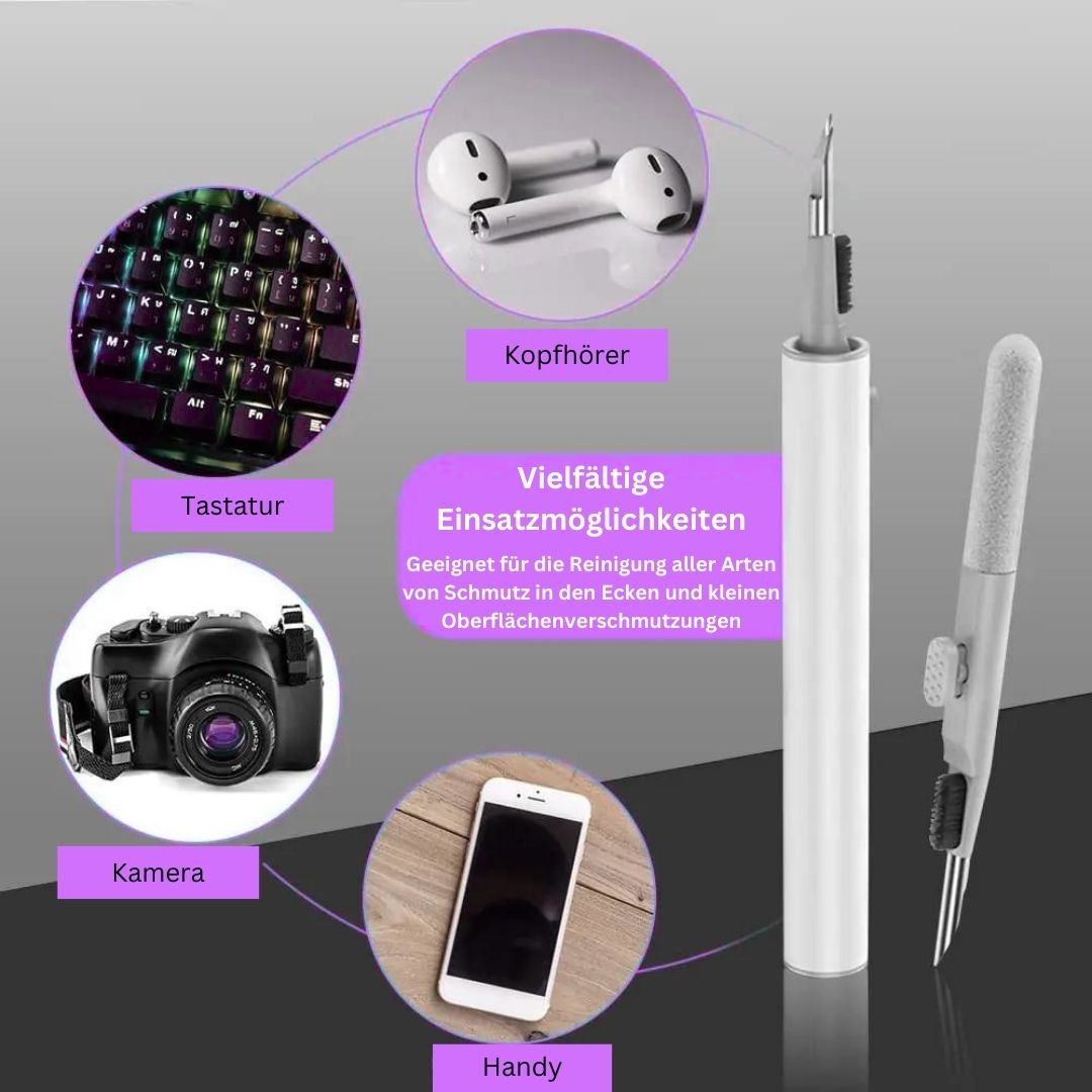 Ich habe das Reinigungsset für Ohrhörer kürzlich ausprobiert und bin begeistert! Die verschiedenen Bürsten sind super praktisch – besonders die Mikrofaserbürste für die akustischen Gittern. Es ist erstaunlich, wie viel Schmutz sich dort ansammelt. Das Set ist leicht und lässt sich problemlos überall mitnehmen. Ideal für alle, die ihre AirPods und Kopfhörer hygienisch sauber halten wollen. Absolute Kaufempfehlung!